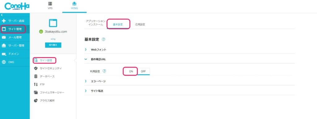 • 動作確認URLでちゃんとサイト・ブログが表示されるか確認する(ConoHa WING側)