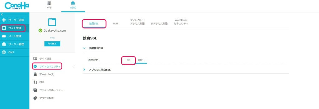 • SSL化する(ConoHa WING側)