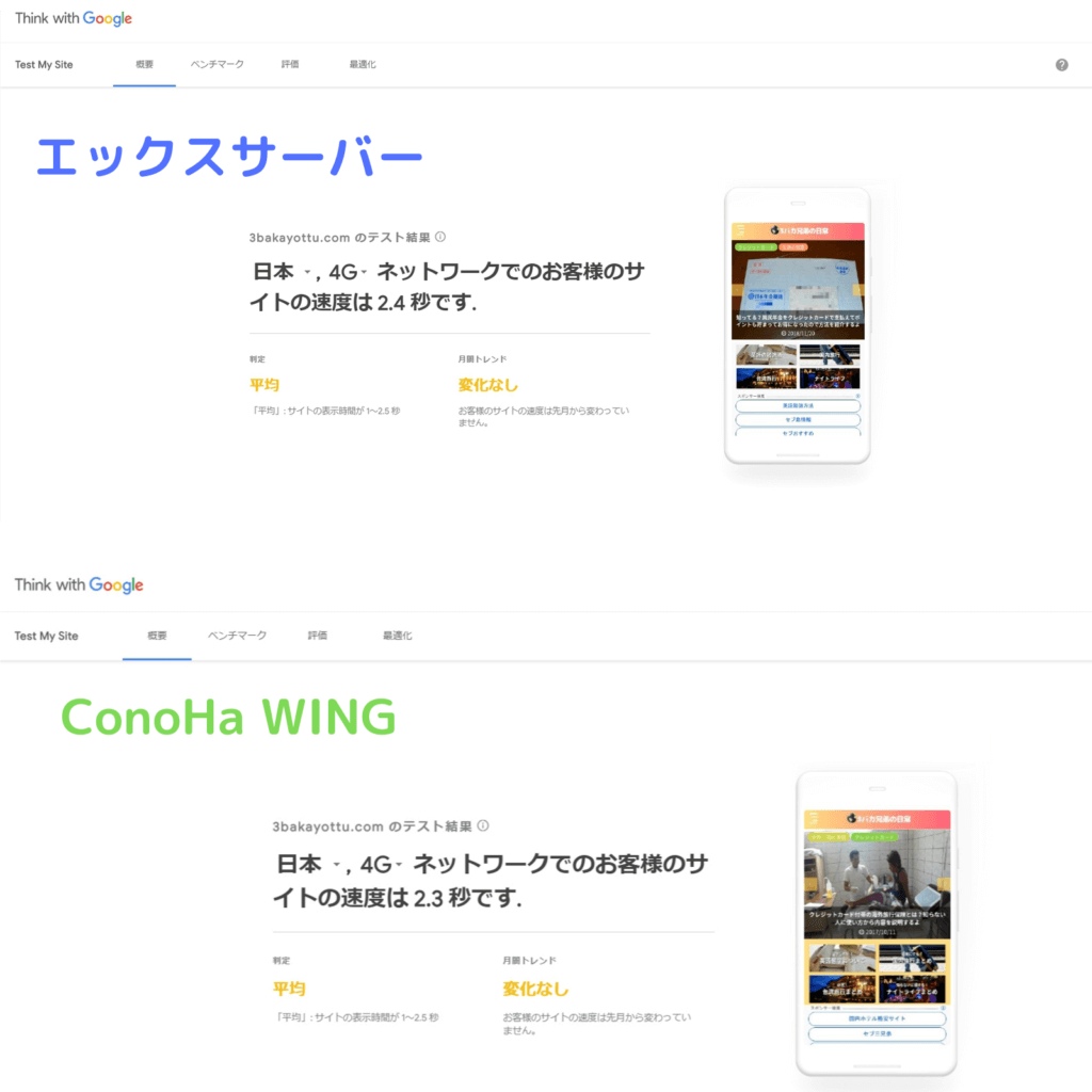 つまり、エックスサーバーからConoHa WINGへの乗り換えは成功でサイト表示速度は速くなりました♪