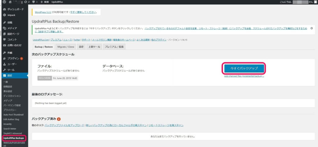 Newプラグイン:UpdraftPlusを使用して移転する容量も気にせずにバックアップも取りながら移行するから一番おすすめな方法です!