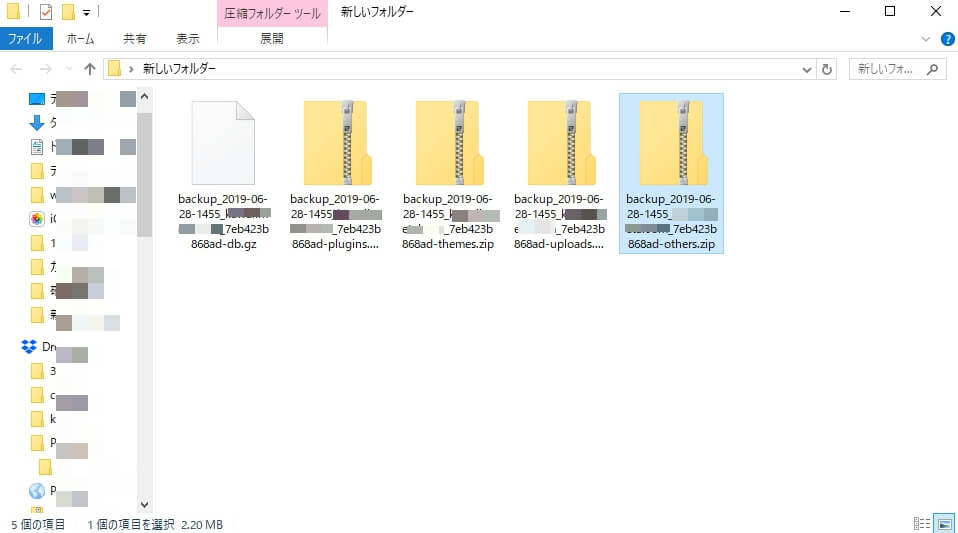 確実に5つのファイルをダウンロードしてね!バックアップファイルをローカルフォルダ(自分のPC)にダウンロードする