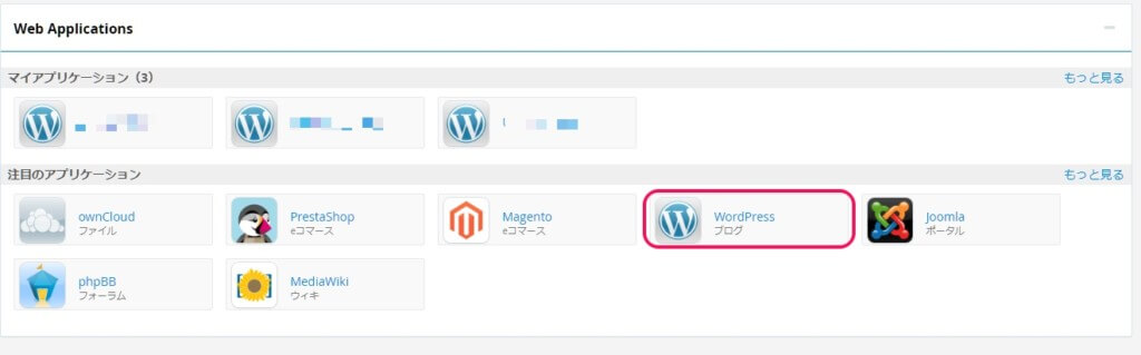 カラフルボックスの場合は「Web Applications」に簡単インストールがあるよ