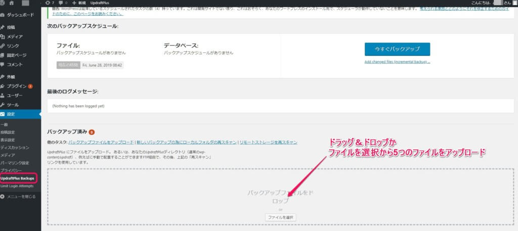 ココが重要です!UpdraftPlusプラグインのバックアップファイルを使って復元する