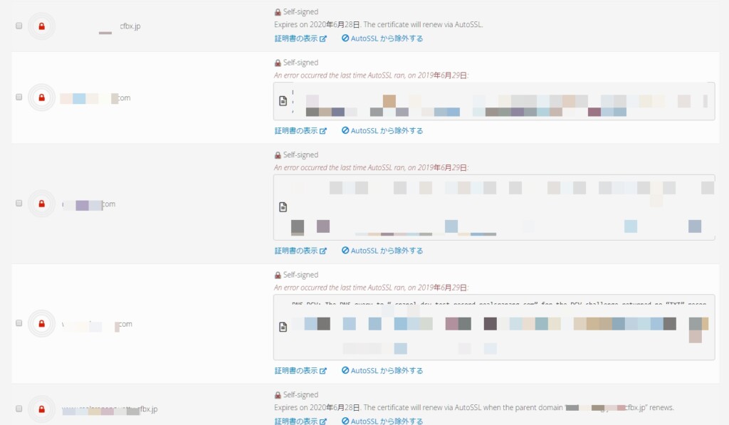 10分くらいして、下の対象ドメインの鍵マークが赤から緑になってればSSL証明書の発行は成功です。